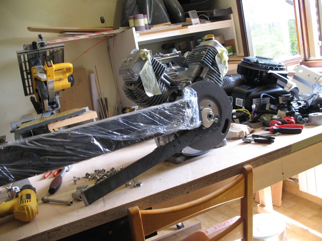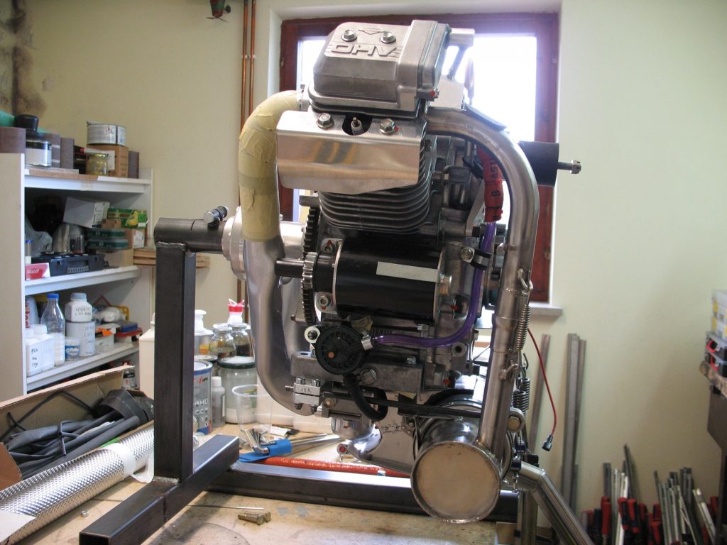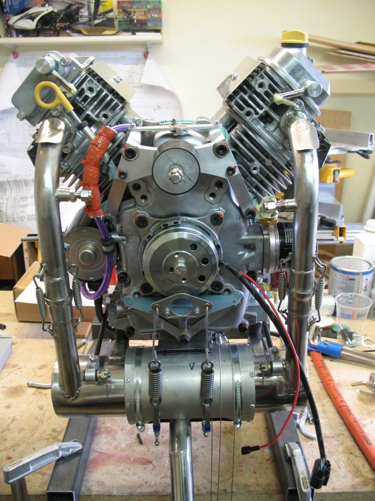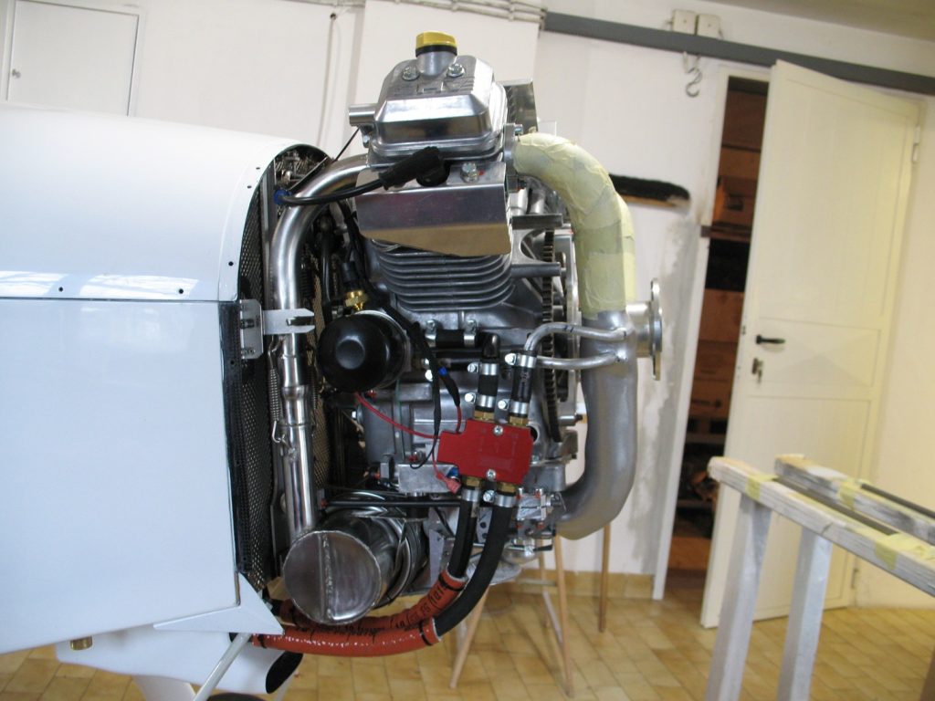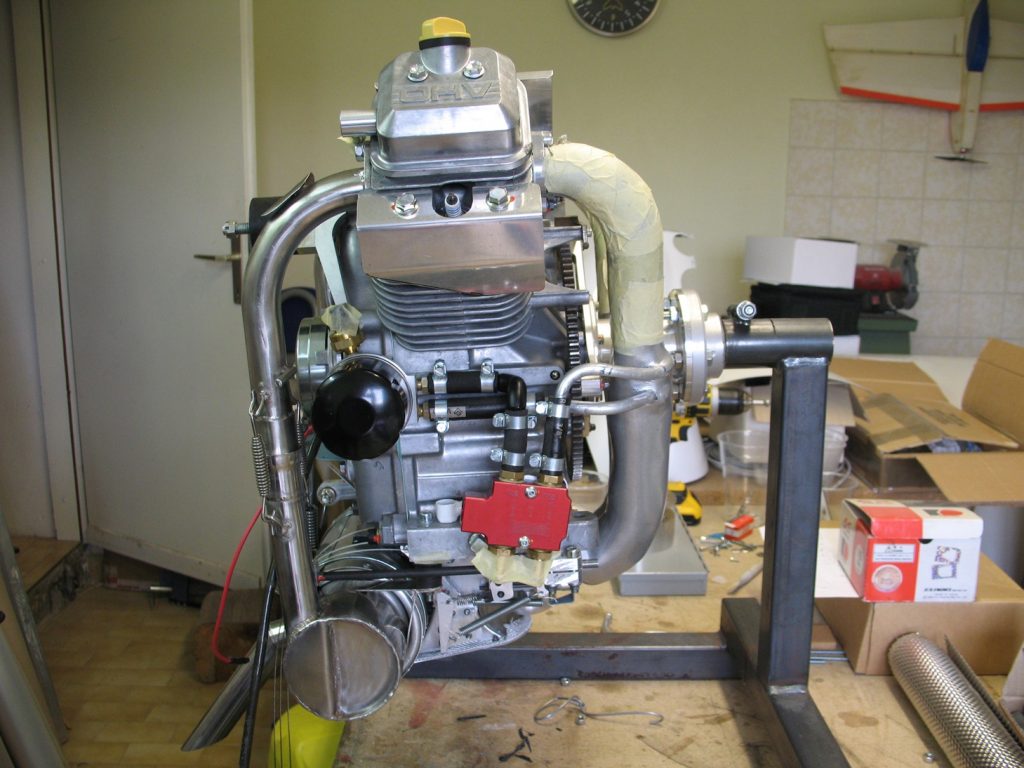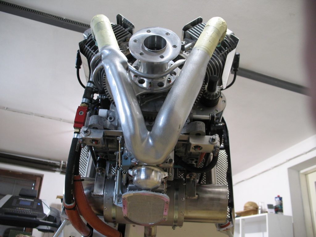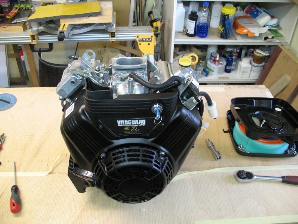 Predelava motorja se začne s standardnim motorje Vanguard 23Hp. Ker je motor namenjen za splošne namene uporabe, odstranimo kar ni potrebno. Ostane goli motor kateri potrebuje dodatne predelave v letalsko različico.