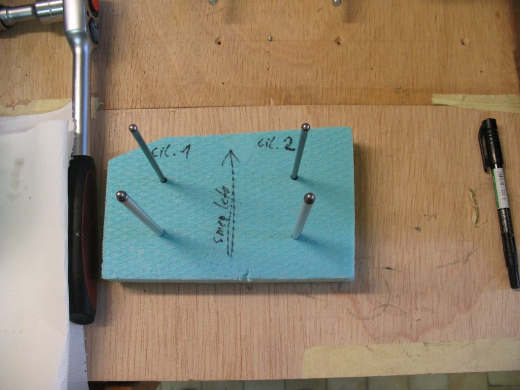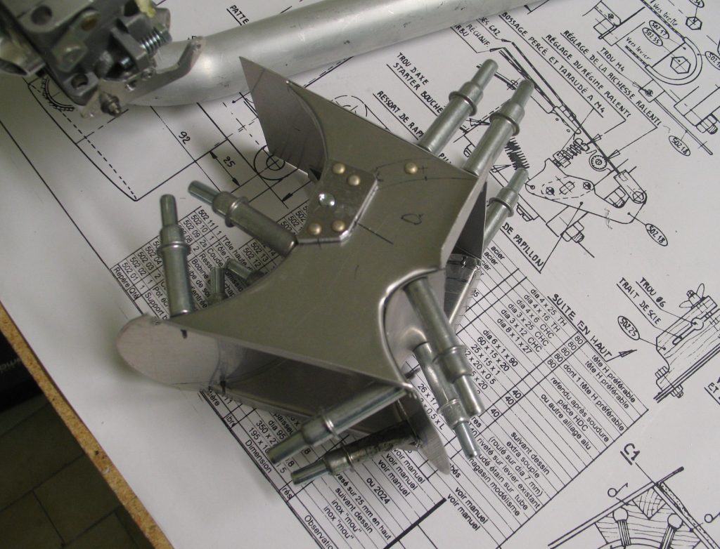 Ročice na sliki so iz aluminija. Te sem prilagodil. Po 60h urah letenja so na pritrdiščih za vzmeti bile obrabljene in zelo načete. Ročice sem ponovno izdelal iz cromolibdena 1,5mm.
