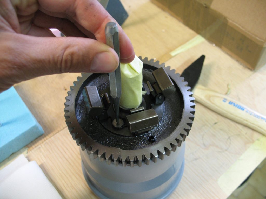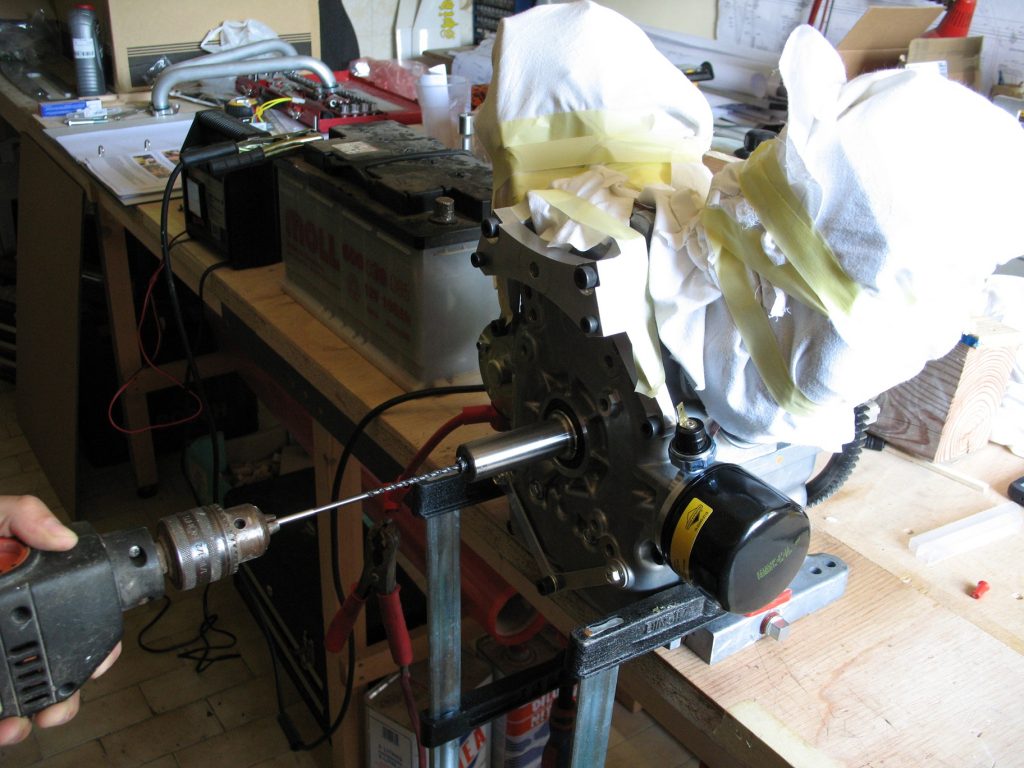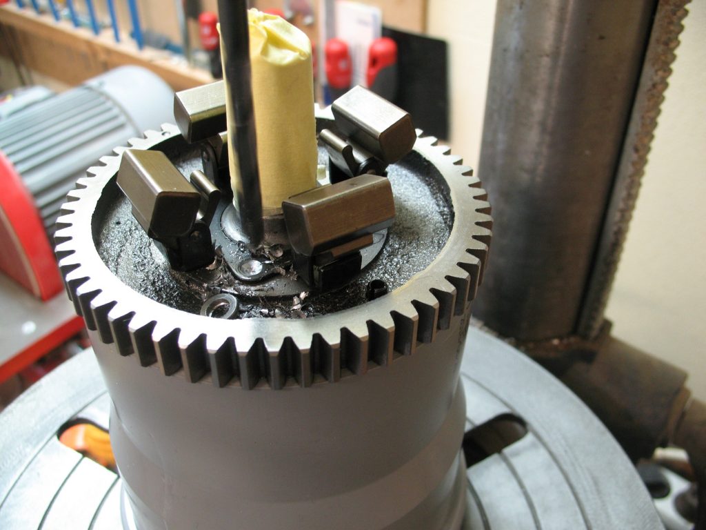 Pri vrtanju se vrti tudi motor s pomočjo zaganjača. Na ta način je luknja centrična.