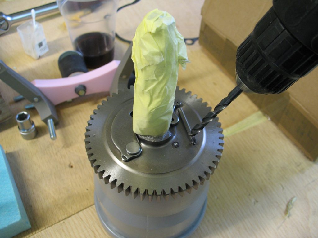 Zobnik za zaganjač je najlažje prevrtati čez vrtalno pušo.