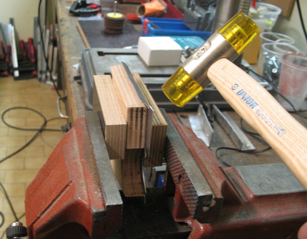 Za zvijanje sem uporabil oblikovano vezano ploščo okoli katere sem zvijal aluminij.