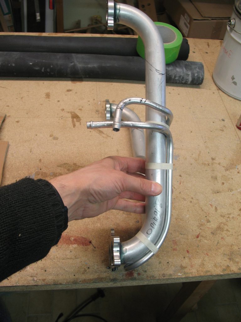 Na približani sliki je prikazano pritrdišče za EGT in termični ščit za žice svečk navarjene na zgornji del cevi.