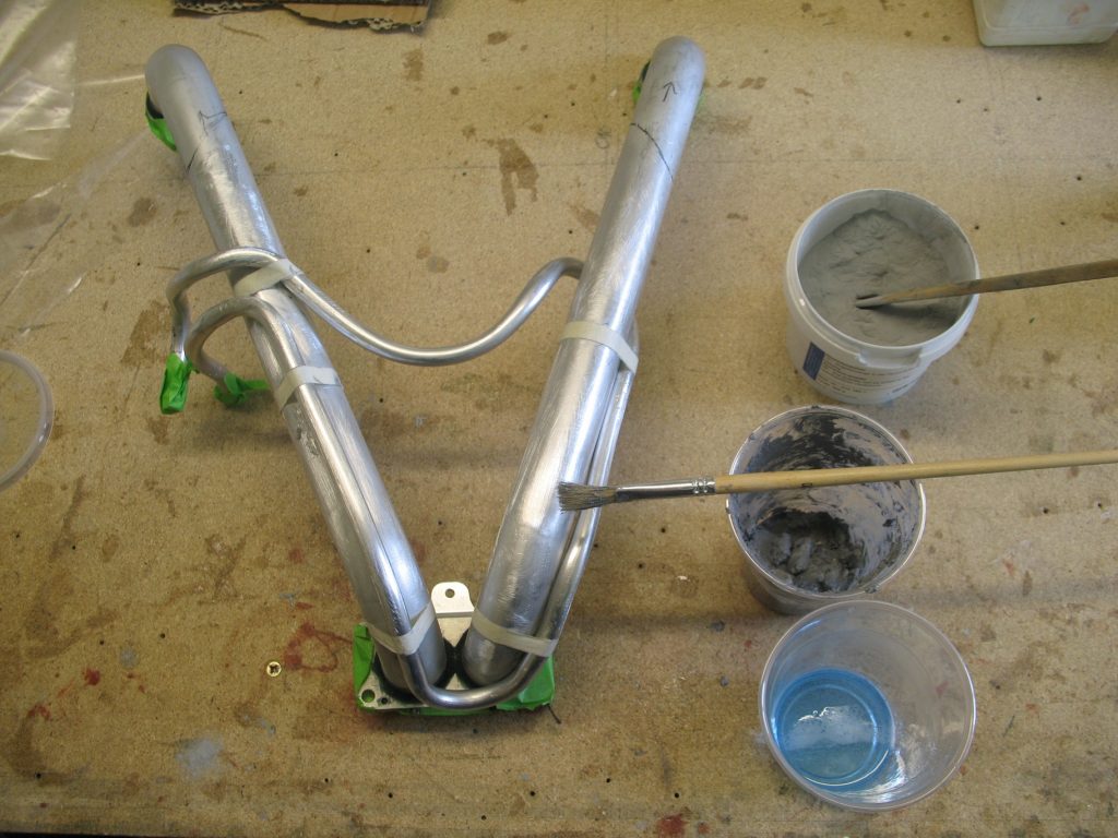 Še špric kit, sledilo je barvanje v srebrno barvo.