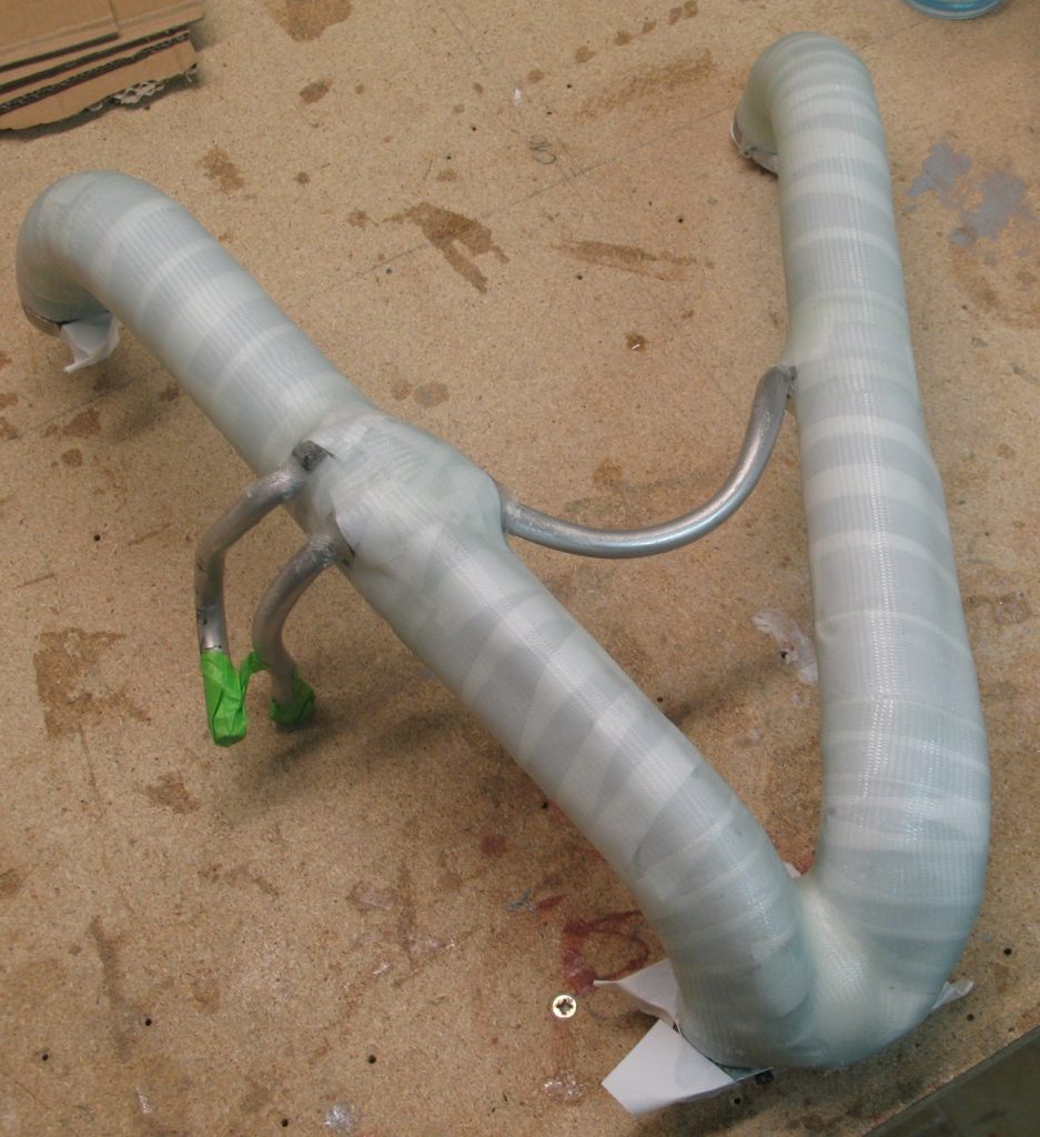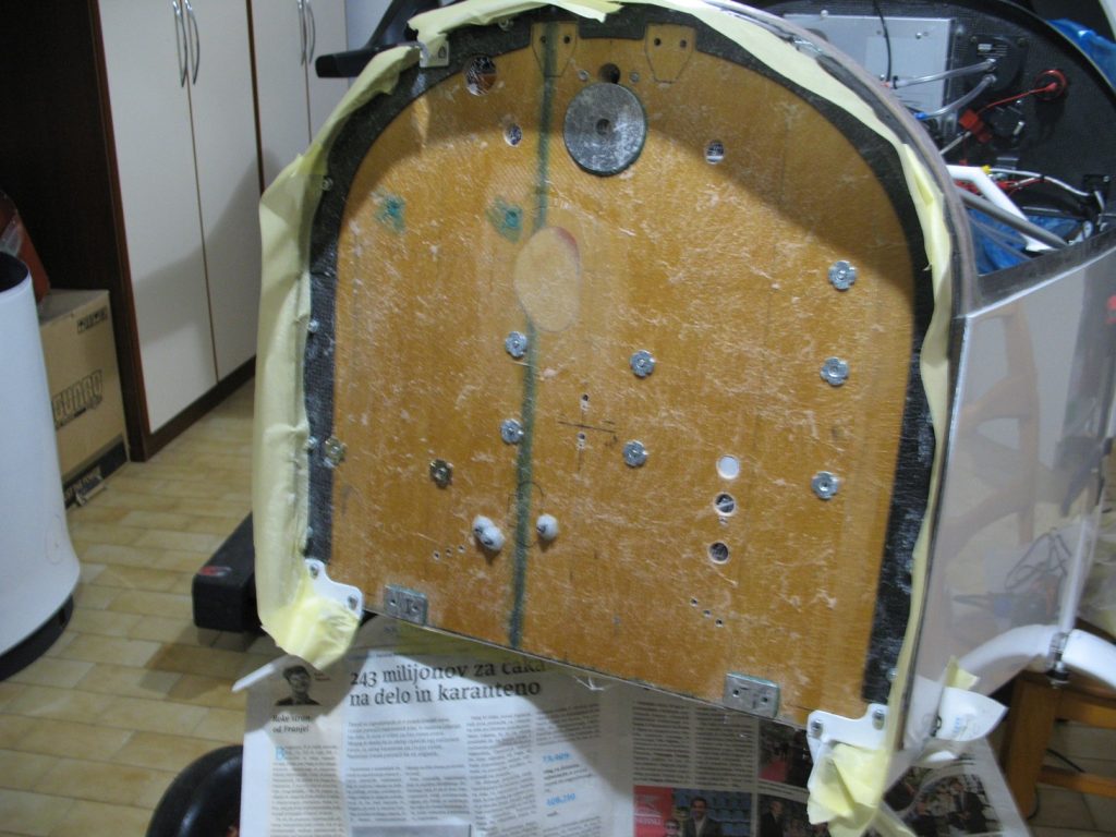 Vse skupaj je prelaminirano z 1× 160g steklom. Na zgornjem delu je prikazana izolacija.